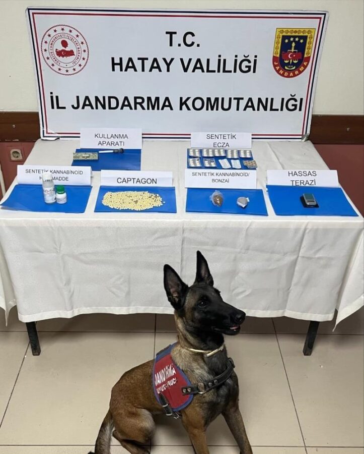 IHAAW173504-ASA/6-11-2025 – İskenderun’da Jandarma’dan uyuşturucu operasyonu (Fotoğraflı) Necati İvgin HATAY (İHA) – Hatay’ın İskenderun ilçesinde Jandarma Komutanlığınca yapılan uyuşturucu ile mücadele çalışmalarında 2 ayrı adreste yapılan aramada çok sayıda çeşitli uyuşturucu madde ele geçirildi. 2 kişi gözaltına alındı. Jandarma Komutanlığınca il genelinde uyuşturucu ile mücadele çalışmaları aralıksız sürüyor. İskenderun ilçesinde ikamet eden H.Y. (42) ve Z.Y. (38) isimli şahısların uyuşturucu madde ticareti yapacağı bilgisi üzerine harekete geçti. Şüphelilerin belirlenen adreslerinde İskenderun 5’inci JASAT Timi, İstihbarat Kısım Amirliği, KOM Şube, NSM Uyuşturucu Madde ve Tütün Arama Köpeği ve Merkez Jandarma Karakol ekiplerince yapılan aramada; 500 adet Captagon, 95 adet sentetik ecza türevi hap, 10 gram amfetamin adlı madde, 25 gram ağırlığında sentetik kannabinoid, 1 adet hassas terazi, 1 adet aseton, 2 adet uyuşturucu madde kullanma aparatı, 1 adet cep telefonu ele geçirildi. Gözaltına alınan şüpheli Z.Y. adlı kadın ifadesinin alınmasının ardından serbest bırakılırken, H.Y. ise çıkarıldığı mahkemece tutuklandı (Nİ-VK-Y) 6.11.2025 08:50:15 TSINNNN