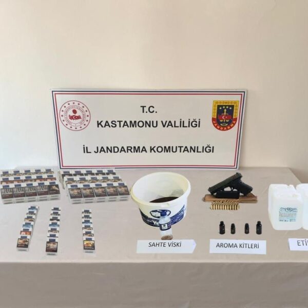 IHAAW200852-ASA/14-10-2025 – Kastamonu’da sahte alkol operasyonu: 6 kişi gözaltına alındı (Fotoğraflı) KASTAMONU (İHA) – Kastamonu’da jandarma ekiplerince gerçekleştirilen sahte alkol operasyonunda 6 şüpheli gözaltına alındı. Edinilen bilgiye göre, Kastamonu İl Jandarma Komutanlığı ekiplerince kaçakçılıkla mücadele kapsamında, 102 paket kaçak sigara, 20 litre etil alkol, 5 litre sahte viski, 4 adet alkol aroma kiti, 51 adet tabanca fişeği ele geçirildi. Ele geçirilen malzemelere Kastamonu Cumhuriyet Başsavcılığında el konulurken, gözaltına alınan şüpheliler A.K., M.U., A.A., A.B., İ.Ü. ve R.A. hakkında adli işlemlere başlanıldı. (Vİ-MK-Y) 14.10.2025 21:01:36 TSINNNN