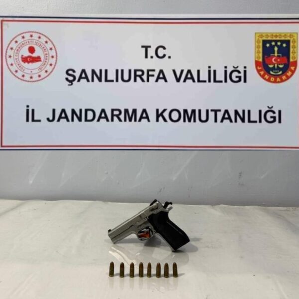 IHAAW152507-ASA/1-10-2025 – Şanlıurfa’da ruhsatsız silah ele geçirildi Esma Albayrak ŞANLIURFA (İHA) – Şanlıurfa’nın Viranşehir ilçesinde jandarma ekipleri tarafından silah ve mermi ele geçirildi. Şanlıurfa İl Jandarma Komutanlığı ekipleri tarafından yasa dışı ve ruhsatsız silahlanmayla mücadele kapsamında çalışma başlatıldı. Çalışma kapsamında jandarma ekipleri ruhsatsız tabanca bulundurduğu tespit edilen 1 şüpheli şahsın ev ve eklentilerine yönelik operasyon düzenlendi. Operasyonda, 1 adet ruhsatsız tabanca, 1 adet tabanca şarjörü, 8 adet fişek ele geçirildi. Şüpheli şahıs hakkında adli işlemler başlatıldı. (EA-LO-Y) 1.10.2025 15:38:47 TSINNNN
