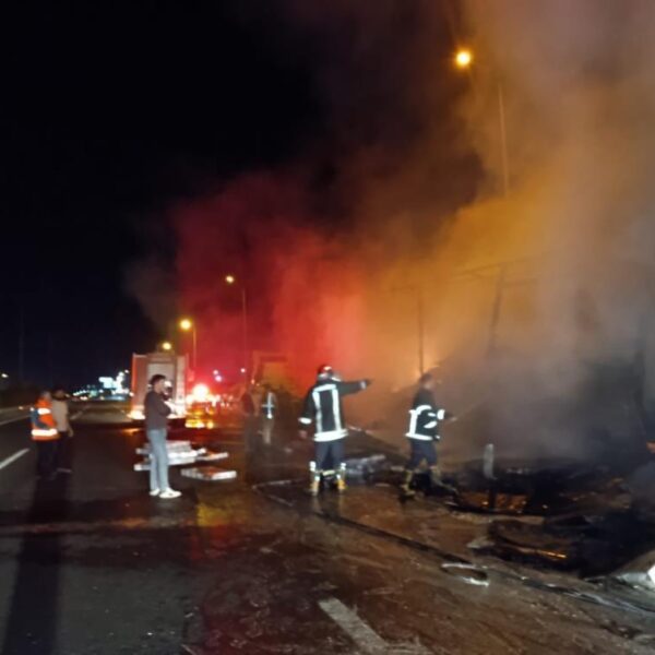 IHAAW001130-ASA/4-10-2025 – Şanlıurfa’da TV yüklü tır alev topuna döndü (Fotoğraflı – Görüntülü) Bekir Şeyhanlı ŞANLIURFA (İHA) – Şanlıurfa’da TV yüklü tır alev alev yandı. Edinilen bilgiye göre olay, Şanlıurfa – Gaziantep otoyolunda meydana geldi. Faysal Ş. idaresindeki 52 K 1355 plakalı televizyon yüklü tır, henüz bilinmeyen bir nedenle yanmaya başladı. Çıkan yangını fark eden sürücü aracını yol kenarına çekerek durumu itfaiye ekiplerine bildirdi. İhbar üzerine bölgeye intikal eden itfaiye ekipleri, alev topuna dönen tır yangınına müdahale ederek kontrol altına aldı. Kontrol altına alınan yangın sonrası tır kullanılamaz hale geldi. Yüzlerce TV yanarak kül oldu. Jandarma ekipleri, tır yangını ile ilgili inceleme çalışması başlattı. (BB-FA-Y) 4.10.2025 00:14:49 TSINNNN
