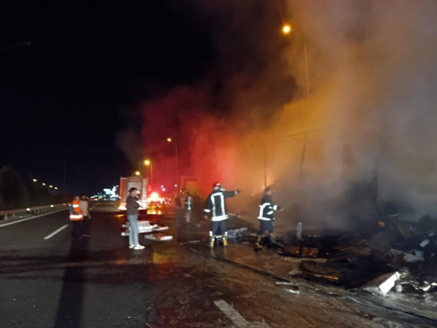 Şanlıurfa’da TV yüklü tır alev topuna döndü