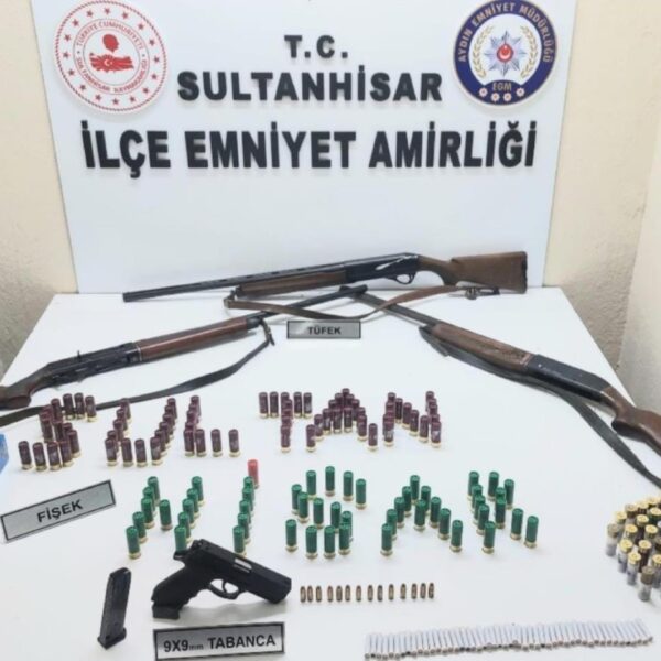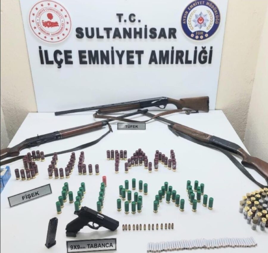IHAAW173441-ASA/10-10-2025 – Sultanhisar’da ruhsatsız silah operasyonu: 1 yakalama (Fotoğraflı) Uğur Eser AYDIN (İHA) – Aydın’ın Sultanhisar ilçesinde bir ikamete yapılan baskında 3 adet ruhsatsız silah ele geçirildi, 1 kişi yakalandı. Sultanhisar İlçe Emniyet Müdürlüğü koordinesinde ruhsatsız silahın iş yerinde veya evde bulundurulmasına yönelik yürütülen çalışmalar kapsamında ekipler, M.İ. isimli şahsın ruhsatsız silah bulundurduğu bilgisine ulaştı. Şüpheli şahsın adresinde yapılan aramada 1 adet ruhsatsız tabanca ve tabancaya ait şarjöre basılı halde 9 adet fişek, 2 adet ruhsatsız av tüfeği ve tüfeklere ait 12 kalibre 184 adet dolu kartuş, 50 adet pipet mermisi diye tabir edilen fişek ele geçirildi. Şüpheli M.İ. yakalanarak gözaltına alınırken, hakkında adli işlem başlatıldı. (UE-OD-Y) 10.10.2025 17:38:38 TSINNNN