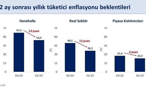 IHAAW171925-EKO/30-10-2025 – Bakan Şimşek: “Reel sektörün enflasyon beklentisi iyileşti” (Fotoğraflı) Ahmet Mert Fırat ANKARA (İHA) – Hazine ve Maliye Bakanı Mehmet Şimşek, “Reel sektörün enflasyon beklentisi iyileşti” dedi. Hazine ve Maliye Bakanı Mehmet Şimşek, sosyal medyadan yaptığı paylaşımda dezenflasyonun devamıyla birlikte beklentilerde iyileşmeyi süreceğini öngördüklerini belirterek, “Eylülde kuraklık kaynaklı artan gıda fiyatları ile mevsimsel diğer unsurların etkisiyle artan enflasyon, piyasa katılımcıları ve hanehalkı 12 ay sonrası enflasyon beklentilerinde aylık bazda sınırlı bozulmaya yol açtı. Reel sektörün enflasyon beklentisi ise iyileşti. Gerçekleşen enflasyon, beklentilerin şekillenmesinde belirleyici oluyor. Dezenflasyonun devamıyla beklentilerde iyileşmenin süreceğini öngörüyoruz” dedi. (MF-BA-Y) 30.10.2025 17:26:33 TSINNNN