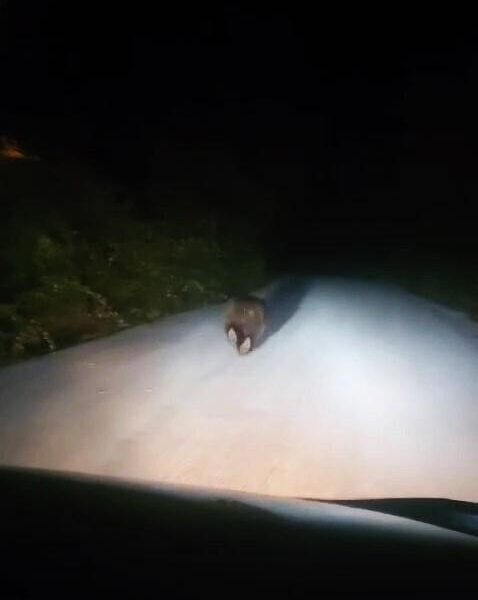 IHAAW101014-CVR/1-11-2025 – Karabük’te yolda koşan ayı kamerada – Ayıya ‘Dayı’ diye seslendi (Fotoğraflı) Mustafa Akgün KARABÜK (İHA) – Karabük’ün Eflani ilçesinde yolda koşan ayı cep telefonu kamerasıyla görüntülendi. İlçeye bağlı Ovaşeyhler Köyü yolunda ilerleyen vatandaşlar, bir süre önlerinde koşan ayıyı görünce o anları kaydetti. Ayının dakikalarca araç önünde koştuğu anlar görüntülere yansırken, kaydı yapanların “Dayı buradan Antalya’ya gidilir mi?” şeklindeki esprili sözleri gülümsetti. Ayı bir süre sonra gözden kayboldu. O anların görüntüleri sosyal medyada da ilgi gördü. (RB-ÖK-Y) 1.11.2025 10:46:09 TSINNNN