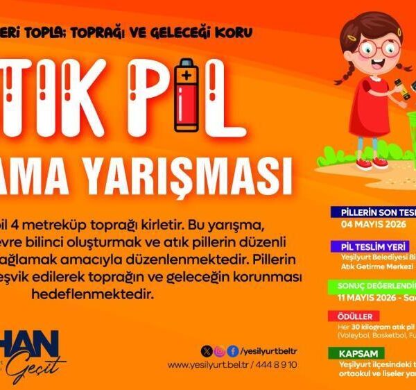 IHAAW121253-CVR/5-10-2025 – Yeşilyurt’ta çocuklar çevre için geri dönüşümde yarışıyor (Fotoğraflı) MALATYA (İHA) – Yeşilyurt Belediyesi, çevre bilincini artırmak ve öğrencilere geri dönüşüm alışkanlığı kazandırmak amacıyla “Okullar Arası Atık Pil Toplama Yarışması” başlattı. Yarışmaya ilçedeki tüm ilkokul, ortaokul ve liseler katılabilecek. Okullar, öğrencilerinin getirdiği atık pilleri 4 Mayıs 2026 tarihine kadar Yeşilyurt Belediyesi 1. Sınıf Atık Getirme Merkezi’ne teslim edecek. Toplanan piller, lisanslı geri dönüşüm tesislerinde çevreye zarar vermeden bertaraf edilecek. Yarışmada en fazla atık pili toplayan okullar, 11 Mayıs 2026’da düzenlenecek törenle ödüllendirilecek. Her 30 kilogram atık pil getiren okula voleybol, basketbol ve futbol toplarından oluşan hediye seti verilecek. Yeşilyurt Belediye Başkanı Prof. Dr. İlhan Geçit, “Bir adet atık pil 4 metreküp toprağı kirletiyor. Bu yarışmayla çocuklarımızın çevre bilinci kazanmasını ve sosyal sorumluluk duygularını geliştirmesini hedefliyoruz. Tüm okullarımızı yarışmaya katılmaya davet ediyorum” diye konuştu. (SA-SVY-Y) 5.10.2025 12:31:41 TSINNNN