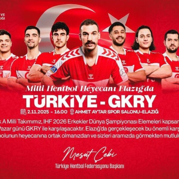 IHAAW112337-SPO/21-10-2025 – Milli hentbol heyecanı Elazığ’da (Fotoğraflı) Hüseyin Kabukçu ELAZIĞ (İHA) – A Milli Hentbol Takımı IHF 2026 Erkekler Dünya Şampiyonası Elemeleri kapsamında 02 Kasım Pazar günü Güney Kıbrıs’la oynayacağı maça Elazığ ev sahipliği yapacak. Erkek A Milli Hentbol Takımı, IHF 2026 Erkekler Dünya Şampiyonası Elemeleri kapsamında 02 Kasım Pazar günü Elazığ’da Güney Kıbrıs ile karşı karşıya gelecek. Elazığ Gençlik ve Spor İl Müdürlüğü’nden yapılan açıklamada; “Bu önemli mücadelede Türk hentbolunun heyecanına ortak olmanızdan ve sizleri tribünlerde aramızda görmekten büyük mutluluk duyacağız. Haydi Elazığ, Milli Takımımızın yanında ol” denildi. (HKB-CK-Y) 21.10.2025 12:24:25 TSINNNN